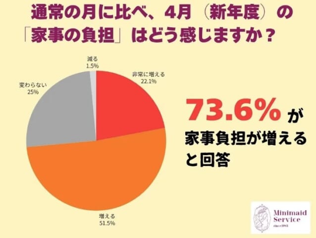 ~【4月新年度】新年度は“見えない家事”が急増、約7割が負担増を実感ミニメイド・サービスが「新年度の家事・育児負担」に関する意識調査を実施~